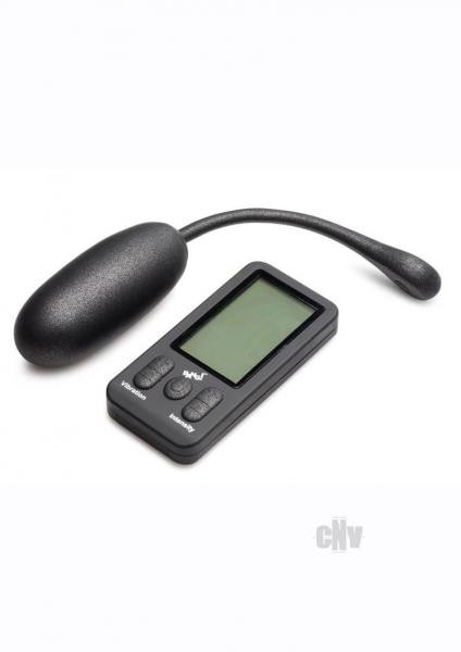 BANG!`s Plush Silicone Vibrating Egg feels like a cloud when ed with its soft squish material is ultra-comfortable against your body! With 5 different vibration patterns and 5 intensity levels you can mix and match for a combined 25 different combinations of play, giving you plenty of options with when the mood strikes. Insert vaginally for direct G spot stimulation and retrieve easily with its included pull cord. Its hypoallergenic silicone has a sleek metallic sheen that is silky smooth to the touch. This plus sized bullet is waterproof, allowing for play practically anywhere. The illuminating LCD display remote allows you to view exactly what intensity level and vibration pattern you are on even in the dark. The added remote is great for solo use or exciting partner play! Use it in the bedroom or for a night of fun out on the town. Play with confidence - this egg is made with body safe, non-porous, phthalate free silicone. Use only with water-based lubricant, silicone material is incompatible with silicone based lubes. Color: Metallic Black Measurements: Overall length 7.8 inches, able length 3.3 inches, widest able diameter 1.3 inches, cord length 4.4 inches Materials: Silicone, ABS Plastic Includes: Silicone Plush Egg Vibe, Remote control with 1 CR2032 battery(included), USB charging cord, and detailed instructions