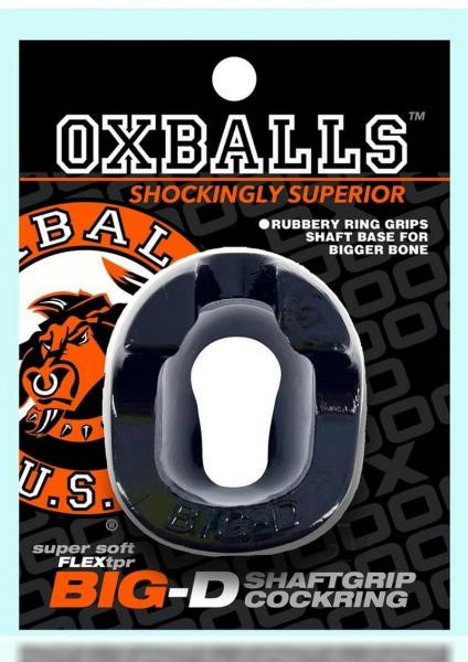 BIG-D shaftgrip cockring by OXBALLS Bigger bulge cockring with shaft grippers at base by OXBALLS BIG-D cockring is thick super-soft rubbery flexTPR big enough to wrap around your cock and balls and push all you got up and out for the biggest D look and feelbut BIG-D also has gripper flanges on top that squeeze the base of your shaft for even bigger harder extra D. BIG-D is oval shaped for better ergo fit, and its got extra padding on the back under your taint for more push-up and push-outthe base of this ring curves in for a bit extra squeeze at the bottom of your nuts and shaft, more squeeze means more bone. HOW TO: a bit of spit or lube is good, stretch ring and tuck your cock and balls through with top shaft-grippers aiming forward on top of your dick.andnbsp; Play hard.andnbsp; Made of our stretchy flexTPR, it`ll keep the grip firm enough with a rubbery comfortable stretch, and the right grip where you want it. Oxballs designs all our gear with the features that make our toys work--our gear works hard, feels lush and rubbery and fits your need.andnbsp; Our goal is making your play bigger harder better. INFO: Shaft-Grippers on top for more shaft squeeze Rubbery bigger comfort-fit long wear cockring Thicker where you need for more bigger bulge Glossy slick flexTPR Extra rim-squeeze and rubbery padding at the base andnbsp; BIG-D is an original design copyright OXBALLS flexTPR non-toxicand phthalate free. LUBE SAFE:andnbsp; Water-based or silicone. CARE:andnbsp; Wash after use in warm soapy water, air dry.andnbsp; Store toys separately:andnbsp; we recommend breathable cloth pouches or cotton socks. andnbsp; MEASUREMENTS/WEIGHTS PRODUCT: Length: 3.5/9 cm Width: 2/5 cmDepth: 1-1.5/3-4 cmOuter circumference: 8/20 cmInside diameter: 1.5-2.5/4-5 cmProduct Weight: 1.5 oz andnbsp; PACKAGING DIMENSIONS: Length: 5.5/14 cm Width: 4.3/11 cm Depth: 2/5 cm Package weight: 3 oz andnbsp; andnbsp;