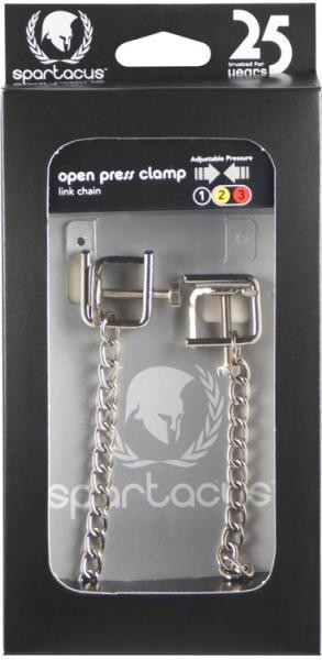Black Adjustable Press Nipple Clamps from Spartacus Leathers. A good fit for practically any nipple, Press clamps offer a wide range of adjustability for a full palette of sensations. Spartacus Press clamps adjust fluidly and effortlessly, allowing for precision adjustments in intensity. This unique single piece nipple clamp works like little press. Turn the thumb screw to tighten. The tighter, the more painful and the less slippage. Weight 0.18 pound. SKU SPF-18. Black Adjustable Press Clamp. No body piercing required. Non-piercing nipple clamps. Categories: Bondage, Fetish & Kink, Sextoys for Couples, Bondage Restraints, Nipple Play. Spatracus Leathers - Black Press Nipple Clamps. Restricted. 2022.