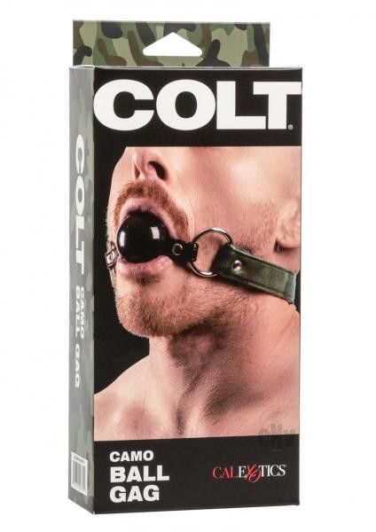 Sturdy Silicone ball gag with adjustable buckle closure Thick and durable camo fabric on one side with comfortablevegan leather on the other Heavy duty hardwareDimensions:Strap: 31 in.Ball Diameter: 1.5 in.Package: 1.5 x 8.5 x 14.5 in.