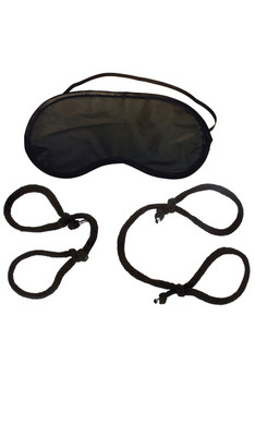 You know you were bound to go there and so let us help you with your very first bondage kit. This kit is perfect for beginner's that want to experiment with being all tied up and at the mercy of each other. The silk ropes are pre-knotted for your convenience, just slip on and tightened to a comfortable fit. A love mask is included to entice the element of surprise - have fun tonight!