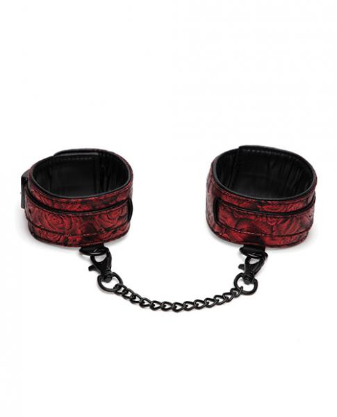 Create your own Christian and Ana mise en scène with the Sweet Anticipation Ankle Cuffs. Made with soft padding in a beautiful rose-patterned, black-and-red colorway, they promise sensually soft but reassuringly firm restraint. “I am just sensation lost in this void of pleasure. Up and down... again and again... Oh yes…” - Anastasia Lovingly crafted with padding and a reversible design, the faux-leather cuffs are fully adjustable with six-hole buckle fastenings to give you the perfect fit. Thanks to a connecting chain with quick-release clips, your erotic adventures stay both secure and safe. What's more, a D-ring to each cuff means adding other restraints is easy. Part of the Fifty Shades of Grey Official Pleasure Collection approved by author E L James. Key features: Softly padded, faux leather, adjustable ankle cuffs for maximum comfort during bondage Reversible design in contrasting black-and-red, rose-print colorway with a 6-hole buckle fastening Connecting chain with quick-release clips for effective restraint D-rings to each cuff offer additional bondage opportunities Finished with 100% nickel-free metal hardware Includes a satin bag for discreet storage Specifications: Fastening: Buckle Features: Vegan Friendly Length: 15.5 Inches Material: Faux Leather