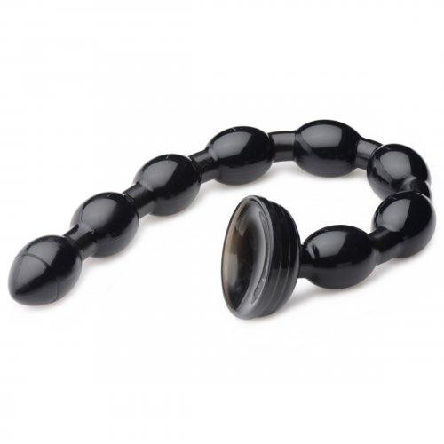 Suction down the base of these sleek, extra long anal beads and prepare to test your limits! With over an inch and a half of girth, you will feel stuffed after inserting the first smooth, tapered bulb. But the more the merrier, as they say! Feed each of the eight swells of this flexible tool into your orifice until you are at maximum capacity. The body safe material is compatible with waterbased and silicone lubricants and cleans off after use with mild soap and warm water. Dimensions total length 19.75 inches, insertable 18.75 inches, diameter 1.5 inches.