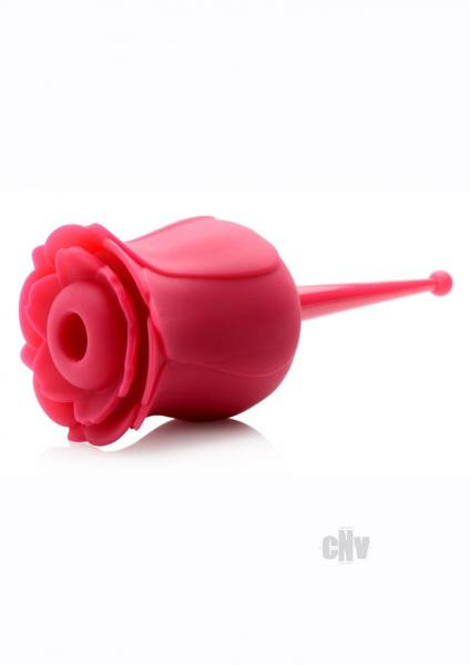 Explore your sexuality with this handy little flower! Bloomgasms Sucking and Vibrating Rose is built for teasing and pleasing - the powerful air pulsing from center of this flower is designed to stimulate your clit or nipples, while the firm pinpoint stem focuses vibration into a small area for maximum teasing stimulation. 5 air stimulation modes and 7 vibration functions available! Built with plush and addicting silicone, with a phthalate-free formula for a worry free play time and IPX5 splashproofing for ease of cleaning and fun in the shower. USB charging cable included to keep this Rose at its best! Measurements: Overall length 5.8 inches, pinpoint vibrator length 3 inches, air stim opening diameter 0.5 inches Materials: Silicone, ABS Plastic Color: Red Key Features: Blossom With Pleasure: Feel your orgasms bloom with 5 air stim modes, 3 speeds, and 4 patterns of vibration! Perfect for exploring and finding your sweet spots solo or with a partner Pinpoint Vibration Stem: The pinpoint vibrating stem firmly focuses the vibration into a tiny point for an intense sensation - perfect for teasing nipples, clits, and lips Addicting Softness: The Rose itself is constructed with a soft and velvety silicone for a plush texture to surround whatever is being sucked! Built with IPX5 splashproofing Great For Partners: Indulge in this rose solo or with your lover - the teasing stem is perfect for making them squirm while blindfolded and restrained, warming them up for the main event