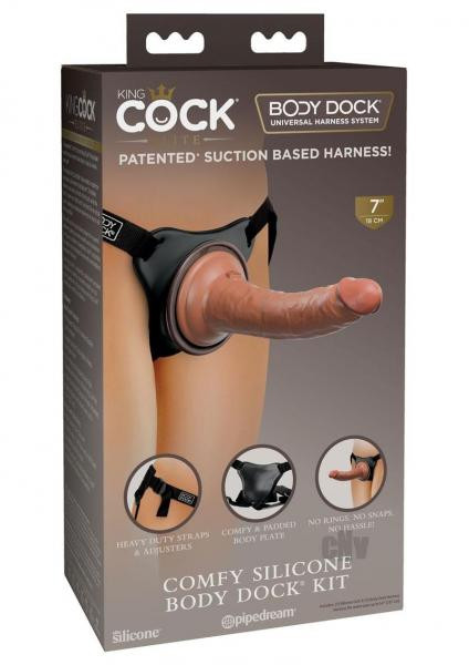 The patented Beginner’s Silicone Body Dock® Kit includes everything you need to take strap-on play to a whole new level! The included King Cock Elite® silicone dildo is made from high-quality, dual-density Elite Silicone™. The lifelike silicone outer skin is smooth to the touch, while the hard silicone inner shaft is stiff and erect like an actual penis, making your pleasure experience as true to real life as possible! The solid suction cup has been designed for superior adherence, giving you more versatility and convenience during use. In addition to being Body Dock® compatible, the suction cup is designed to work with most traditional harnesses if desired. Every King Cock® is responsibly crafted with compliant materials and carefully checked to match our top-quality guidelines. You can enjoy every King Cock® masterpiece with full confidence. Body Dock® Harness: The Easiest Strap-On Harness System on the Market Patented Push & Play Design works with most suction cups Simply push the suction cup of your favorite dildo or vibrator against the concave suction dock until ALL of the air between them is released! The suction creates a super-strong bond with no need for rings or snaps! Angled Suction Dock Helps to Keep the Dildo Erect: The Body Dock® has been designed with an angled suction dock to help counteract sagging caused by traditional harnesses, keeping everything looking as natural and true to life as possible. Form-Fitted Body Plate Distributes Pressure Evenly Enhancing Comfort: The wide, form-fitted body plate distributes pressure evenly across the pelvic region, reducing pinpoint pressure that can be caused by traditional harnesses. In addition, the heavy-duty nylon straps and plastic adjusters make the harness fully adjustable to fit most sizes, and helps to hold tight when the action heats up! Heavy-Duty Nylon Straps and Plastic Adjusters Easily Adjusts to Fit Waist Sizes Up to 54" (137 cm) King Cock Elite ® Dildo: High-Quality Elite Silicone™: Made from 100% Elite Silicone™, all King Cock Elite® products are designed for maximum pleasure and are easy to clean! Dual Density - Soft Skin with a Stiff Shaft: King Cock Elite® dildos are smooth to the touch on the outside, while the inner shaft is stiff and erect like a real penis! Incredible Lifelike Textures & Details: Each King Cock Elite® Dildo is sculpted to perfection offering superior realism. Every curve, vein, and contour has been crafted to create experiences that are as true to real life as possible. Wide Suction Cup Base is Body Dock® & Strap-On Harness Compatible: The wide suction cup has been designed for ultimate adherence to almost any flat surface, and the wide base is harness compatible. The docking plate measures 3.4 in. (86 mm) in diameter and can accommodate any dildo with a suction cup with a diameter smaller than this size.