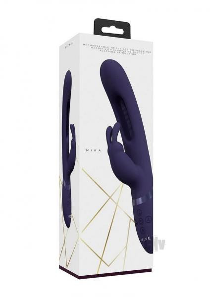 The unique design of the VIVE057 MIKA Flapping Tongue Rabbit vibrator makes it stand completely apart from other devices. Three independently controlled New Generation F1 10-speed/function motors power this beautifully designed vibrator. There is a flapping tongue G-spot motor function, a vibration tip and an outer clitoral Rabbit function. With over 1000 different combinations this toy will bring you to places never dreamed of. When you're getting close to climax, just one touch of the special function climax button will immediately bring all the motors to full power/speed. The fully USB magnetic rechargeable medical-grade silicone vibrator boasts a 60-minute battery life and is totally waterproof (IPX6) which means you can enjoy this toy anywhere you want. All VIVE vibrators come with a 1-year warranty.
