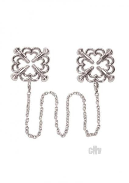 The Me You Us Flower Design Nipple Chain with an eye-catching flower design that`s elegant while also enhancing playtime! These clamps are easy to attach and remove, providing a hassle-free experience for both beginners and experienced users alike. Equipped with 4-way grip-tightening screws, these Nipple Clamps allow you to adjust and control the level of grip to your preference. The intricate flower design transform this kinky accessory into a fashionable and seductive statement piece. The intuitive design of these nipple clamps ensure you`ll be ready to explore in no time. The attached chains can be pulled on gently for pleasurable stimulation for the wearer. The Me You Us Flower Design Nipple Chain is the perfect combination of style and functionality.