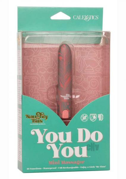 No matter where your travels take you, enjoy a little me time` with the Naughty Bits® You do You Mini Massager. The powerful mini bullet is packed with 10 functions of vibration, memory chip, and bold pattern. The mini massager fits between your fingers to let you deliver pinpoint tantalization and thrill with rumbling vibrations. Get playful while you flicker through 10 indulgent vibration, pulsation and escalation functions with the easy-touch control button. Charge up your passion in just 2 hours by plugging the provided USB cable into the self-sealing charging port on the base of the massager. Get playful with up to 60 minutes of high intensity vibrations with every charge. The slim massager discreet 3-inch size makes it the perfect travel companion, letting you embrace radiating pleasure wherever your fantasies take you. The Naughty Bits collection is made to stand out in any nightstand with eye-catching designs and orgasmic features. The feminine floral pattern and compact design of this gorgeous mini massager will make even the most stylish lover smiling before and after.