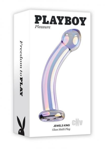 Freedom to Play:Introducing the Jewels collection, destined to be a favorite in your sex toy drawer. The Jewels King commands your attention with its impressive size and invigorating curve. The bulbous teardrop head with a tapered tip makes anal and vaginal ion comfortable and easy. Explore the length of the smooth shaft and the firm and pleasurable G-Spot or P-Spot stimulation. Made of body-safe borosilicate glass, this Multi Play toy shimmers with a crystal iridescent finish and the flared safety base features the Rabbit Head Design. Experience temperature play by immersing the toy in warm or cool water before use. Panel Details Play with me (key feature): shatter resistant Glass, deeply curved. Multi Play Toy Vibration: No Material: Borosilicate Glass Waterproof and submersible: Yes Warranty: Five years Size Specs Height: 6.43 Depth: 1.92 Width: 1.92 Insertable Length: 5.5, diameter: 1.56