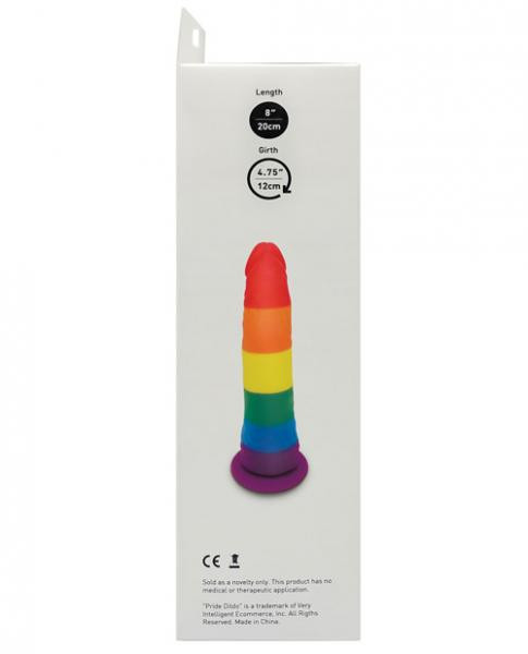 What is better than a long silicone dong? A long dong with a suction cup made in the colors of the pride flag! This dildo is made completely from medical grade silicone, so you can rest assured that if the mood strikes, you can remove it from the mantle and plug it into any orifice safely. Measures 8 inches long and 4.5 inches in girth.