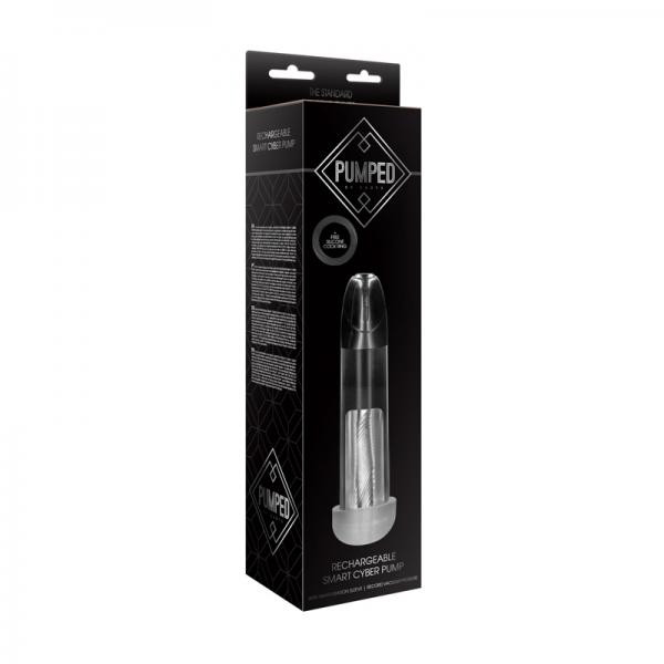 "Rechargeable Smart Cyber Pump with sleeve - Transparent. With just the touch of one button, this RECHARGEABLE SMART CYBER PUMP will take you through a complete smart cycle and record your max vacuum pressure at the same time ? allowing you to concentrate on enjoyable sensations. The super-soft masturbation sleeve magnifies the view of your penis for unmatched visual stimulation. The pump always creates a tight seal for comfortable but very effective suction! This high-tech pump is really easy to disassemble and clean. Standing 31 cm (12.2"") tall and with a chamber that can hold a length of 20 cm (7.9"") it revs up to an impressive 3700 RPM at a very low noise level of less than 55dB. The inner girth is 6.1 cm (2.4"") so there always enough space to ?grow"". The built-in rechargeable battery needs 120 minutes for a full charge giving 110 minutes of extravagant playtime!. This pump is NOT waterproof. HOW TO USE Lubricate the sleeve of the cylinder and your penis with a water-based lubricant before use. DO NOT use silicone lubricants. If you feel uncomfortable with the vacuum at any time, release some of the vacuum through the vacuum release button. To achieve the best result, you can apply some efficient techniques: such as: alternating the vacuum from time to time or making stroking movements after erection. CHARGING LED light flashes while charging, and glows solid when fully charged."