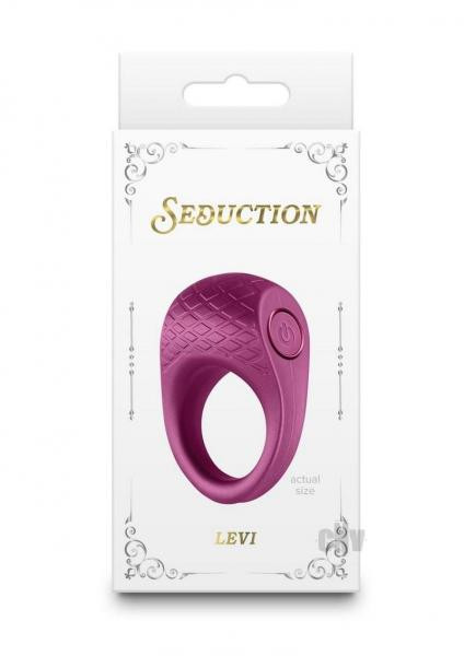 Perpetuate pleasure and boost performance with Levi by Seduction. A sleek, vibrating cock ring that fits snugly and provides intense vibrations. Levi is made of stretchy, body-safe silicone and is textured for added sensations. Silicone has a beautiful metallic sheen. Rechargeable. Water Resistant. Suitable with all lubricants, including silicone. 3 speeds / 7 functions.
