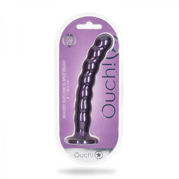 The 8" / 20.5 cm Beaded Silicone G-spot Dildo, with its strong suction cup and beautiful metallic color, is in a class of its own. Whether you are going solo, with your partner or even using it with a strap-on, explore new pleasures with these beautiful Ouch! Premium silicone and liquid silicone dildos. Pairs perfectly with the Ouch Strap-on Panties. Dimensions package: 5.12" x 2.76" x 15.35" Weight package: 8.89 oz Product dimensions: 2.44" x 2.44" x 8.27" Product weight: 6.67 oz Product diameter: 1.22" Insertable length: 8.03" Waterproof: Yes Splashproof: Yes Phthalate free: Yes Materials: Silicone