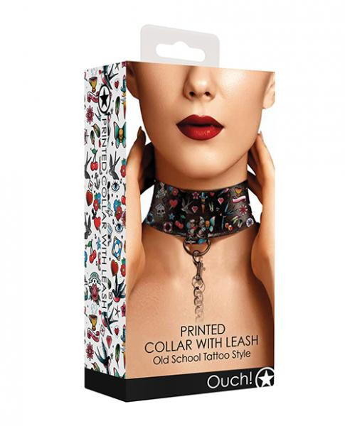 Order your Shots Ouch Old School Tattoo Style Printed Collar W/leash- Black Sex Toys today!