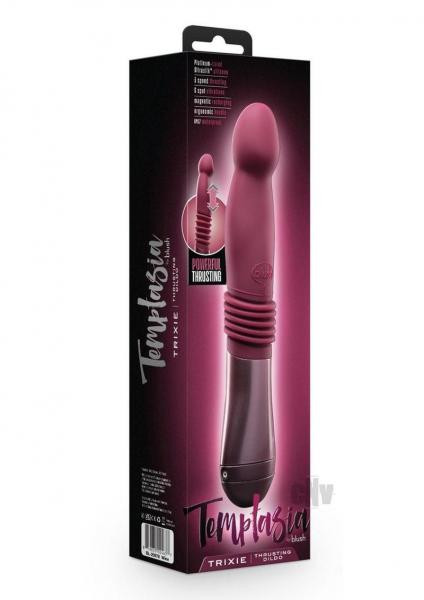 Beautiful pleasure is yours to have with the Temptasia Trixie. This beautiful toy has 3 powerful thrusting speeds (1.25 thrusting length) and a curved shaft for optimal G spot and P Spot stimulation! Trixie has a long, ergonomic handle for optimal accessibility and comfort during play and a smooth, sleek shaft. Made of Puria platinum-cured silicone, Trixie is body-safe, phthalate free, fragrance free, latex free, and easy to clean. USB magnetic rechargeable (to ensure it remains waterproof for the life of the product) and IPX7 waterproof, Trixie is ready to be your most loved temptation.