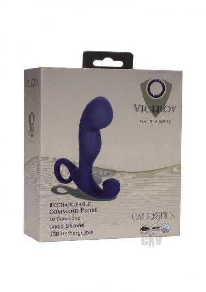 Take command of your pleasure, while the Viceroy Rechargeable Command Probe vibrates you into an orgasmic fantasy. The perfectly curved shaft, bendable design and easy retrieval ring let you deliver pinpointed pleasure with every thrust, while 10 functions of vibration deliver knee-shaking stimulation. An easy-touch control button lets you easily cycle through the 10 functions of vibration, even when things get wet and wild. The ergonomically curved probe with bulbous tip design is created to perfectly tease intimate curves, while the bendable shaft delivers knee-shaking pleasure. The easy pull retrieval ring is great for controlling stimulation for your lover, sensational solo play, or gentle removal. Take the good times to go with the security travel lock feature and the vibe will remember just how you like it with the state-of-the-art memory chip to resume on the last function used. The premium liquid silicone is body safe, unscented and phthalate free to keep your most sensitive spots, happy and healthy.