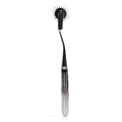 A stinging, teasing tool from KinkLab, the Pinwheel is a sensory treat for couples that crave a little pain along with their pleasure. Perfect for all kinds of bondage and dominance scenarios, the PinWheel is meant to be lightly rolled over the skin, creating an exhilarating, endorphin-releasing sensation that's completely unique and entirely unforgettable. Weighty and ergonomically shaped, the sharp, spiky wheel rolls smoothly on a slim handle that's comfortable and secure in hand, allowing for perfect placement and easy maneuvering. It comes sheathed in a black leather case, great for storage and travel.