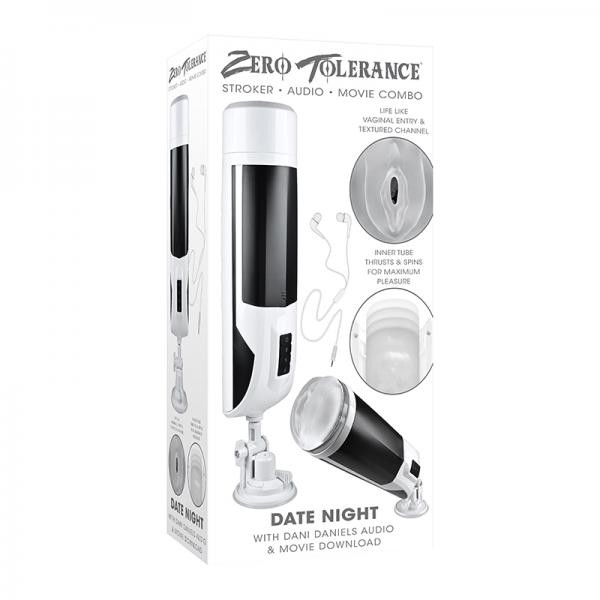 Date Night with Dani Daniels Audio andamp; Movie Download Have you ever fantasized about a hot date night with Dani Daniels? Now you can create the ultimate experience with this thrusting, rotating stroker that whispers Dani dirty talk directly in your ear! The super-soft stretchy TPE rubber sleeve feels so realistic with its hand-crafted life-like entry and textured channel. The powerful 7-speed motor strokes and caresses simultaneously, moving in all directions, while you just enjoy the pleasure and listen to Dani`s sexy voice. You can even twist on the suction cup base for hands-free play and start watching your free movie download! Then when you want it most, engage Turbo Mode for an instant boost of max power to put you over the edge! Rechargeable, splashproof and easy to clean. Thrusting rotating stroker with erotic audio Removeable suction cup base for hands-free play 7 thrusting and rotating speeds andamp; functions Life like vaginal entry and textured channel Inner sleeve removes for cleaning Turbo mode for instant max power boost Dani Daniels erotic audio clip andamp; movie download, earbuds included LED illuminates buttons when in use Height: 12.95, Depth: 3.68, Width: 3.55 Weight: Over 2 lbs Sleeve made from stretchy soft TPE rubber Case made from durable ABS Plastic Splashproof Phthalate andamp; latex free Rechargeable, USB cable included
